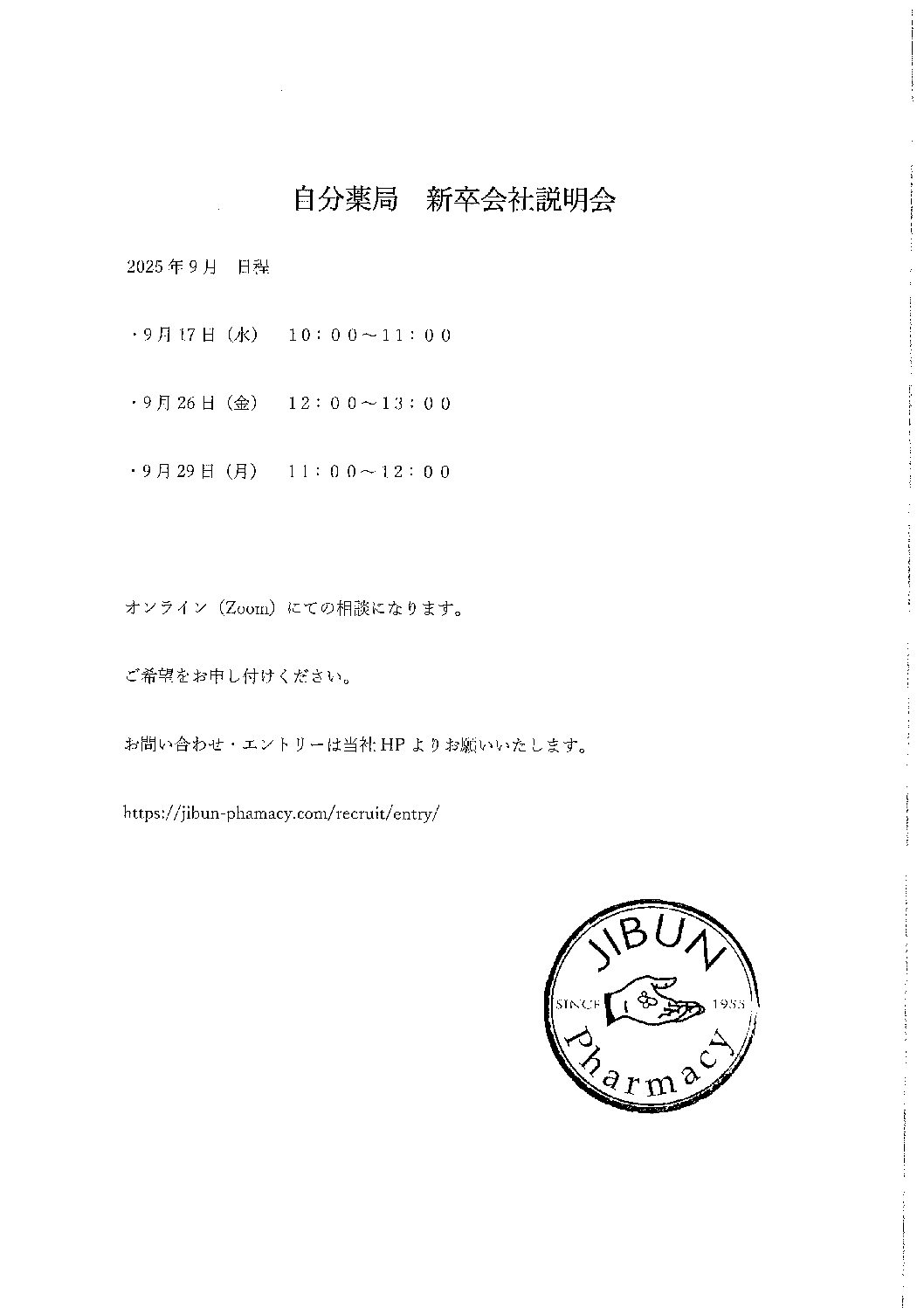 いつも自分薬局をごひいきにいただき、ありがとうございます。 当社では、2026年3月卒業予定及び2026年2月に薬剤師国家試験を受...